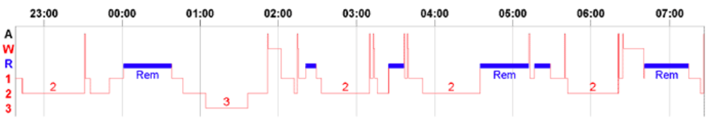 Beim nachstehenden Beispiel sind die Schlafphasen gestört.